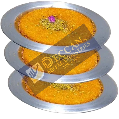 kunafa, the aluminum 7″ Kunafa Plate is a small, effective serving and baking plate. This plate’s superior heat conduction from its premium aluminum construction guarantees even baking and a crispy finish. It is appropriate for home kitchens, restaurants, and catering businesses because of its 7-inch size, which makes it ideal for single or little portions. The plate is sturdy and lightweight, making it simple to handle, clean, and store. Food releases easily and does not adhere to the slick surface. This platter gives your dessert presentation convenience and authenticity whether you are baking or serving.